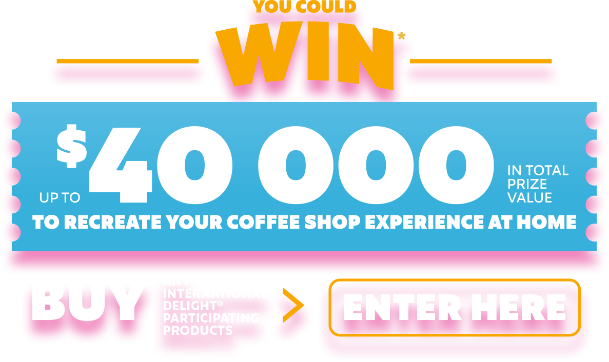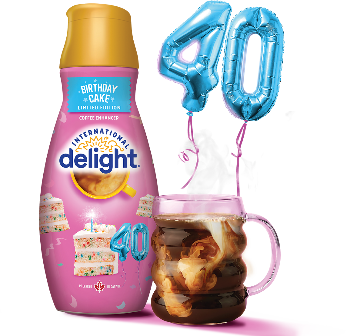 NO PURCHASE NECESSARY. Subject to Official Rules. Open to legal residents of Canada, age of majority. Contest runs March 5, 2026–May 18, 2026. Limit ten (10) entries per person. One (1) $10,000 CAD Grand Prize, forty-five (45) $500 CAD digital prepaid card First Prizes, and seven hundred (700) Second Prizes (1 free International Delight product coupon). Limit one (1) Grand Prize or one (1) First Prize per person. Skill-testing question required. See Official Rules at http://www.celebrate40years.ca/.